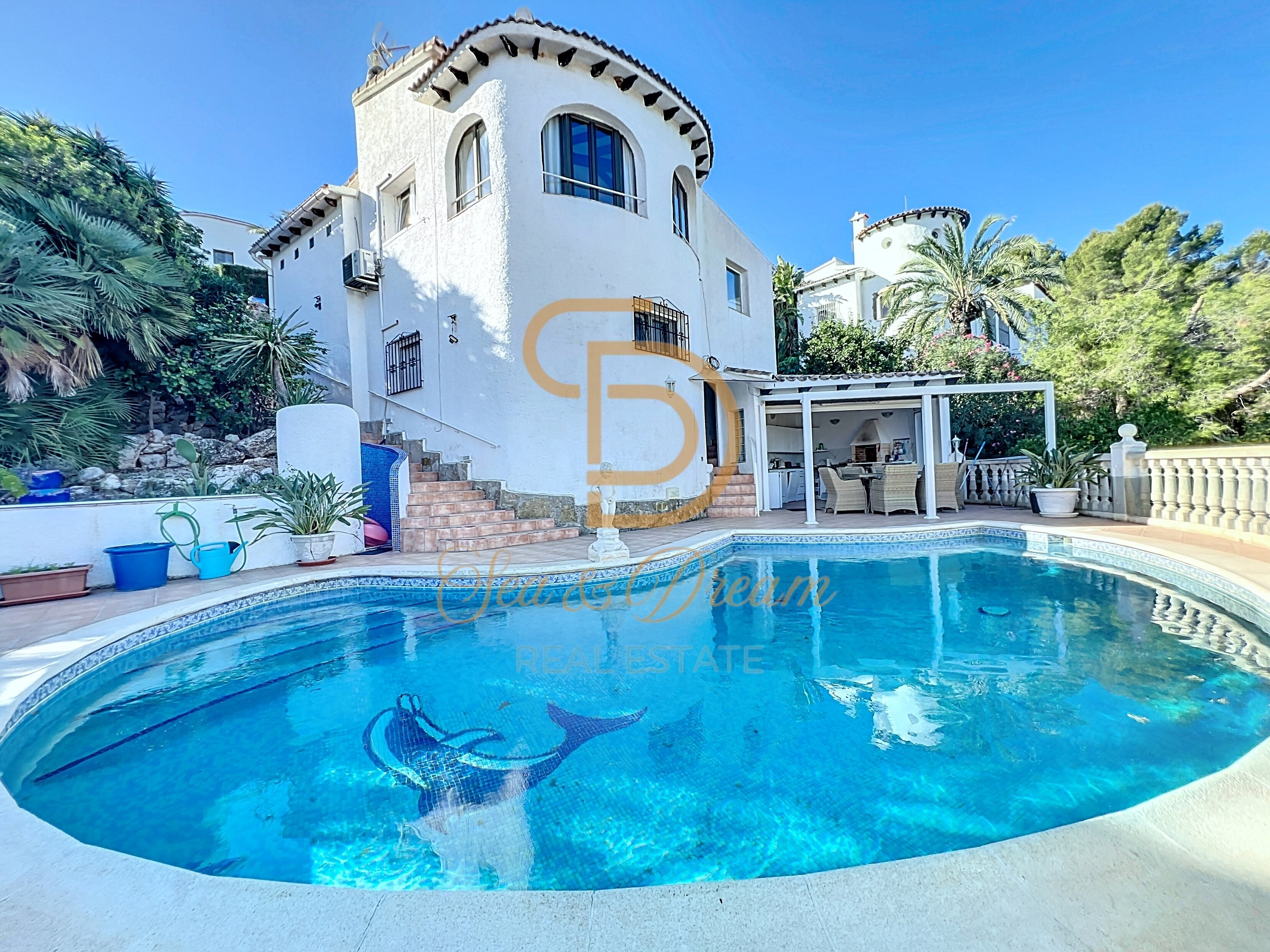 Le grand jardin paysagé, inspiré par le style méditerranéen, est un véritable atout pour les amoureux de la nature. Profitez d’une petite vue mer et admirez le majestueux Montgó depuis votre terrasse ou balcon. Un spacieux garage et un studio séparé ajoutent encore plus de valeur à cette propriété exceptionnelle.